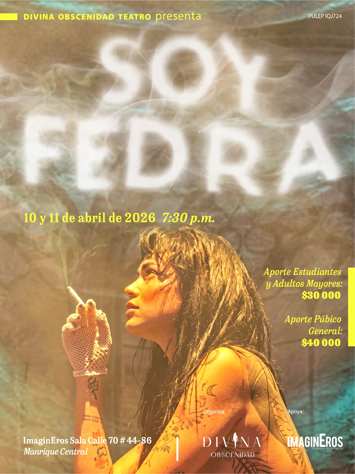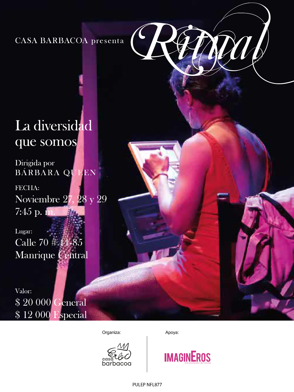 Divina obscenidad surgió en el 2013 como una compañía de teatro que explora la erótica del cuerpo, ese cuerpo que también se expresa de otras maneras distintas al de la palabra escrita y hablada. Noche de teatro, divino y obsceno, la propuesta que trae a ImaginEros está en esa línea del microrelato, microteatro de lo erotico, en una intención de desestabilizar y descolonizar las hegemonías del cuerpo..